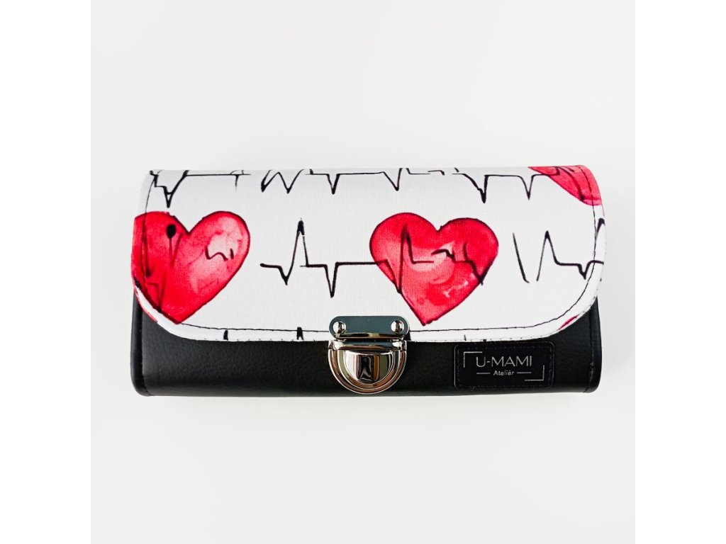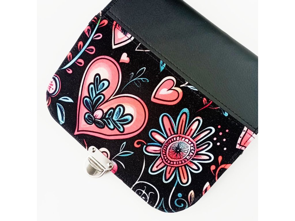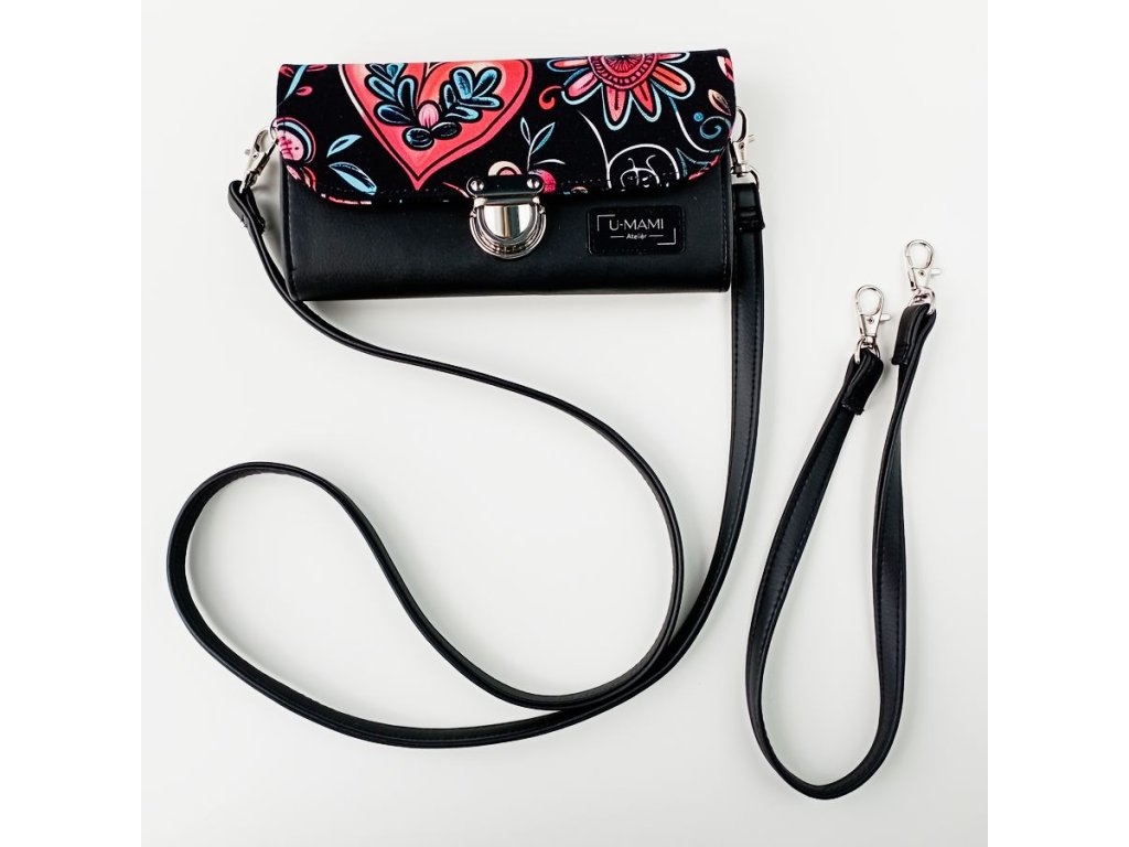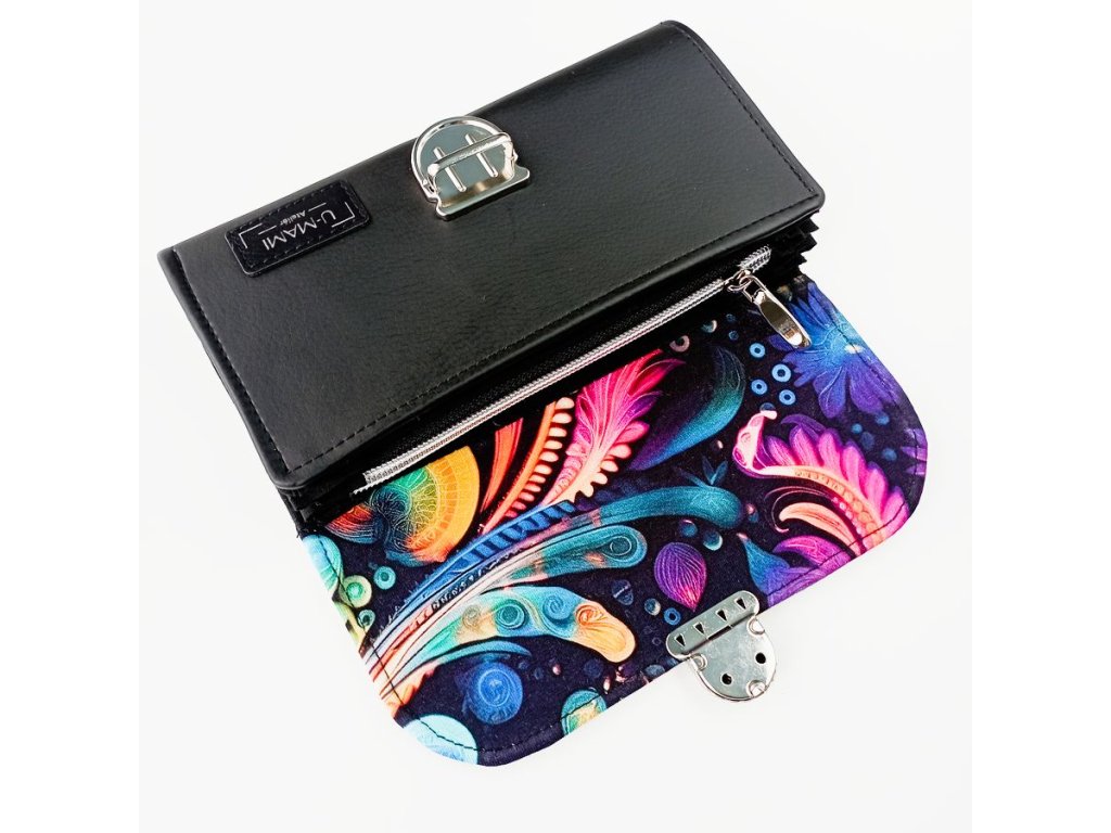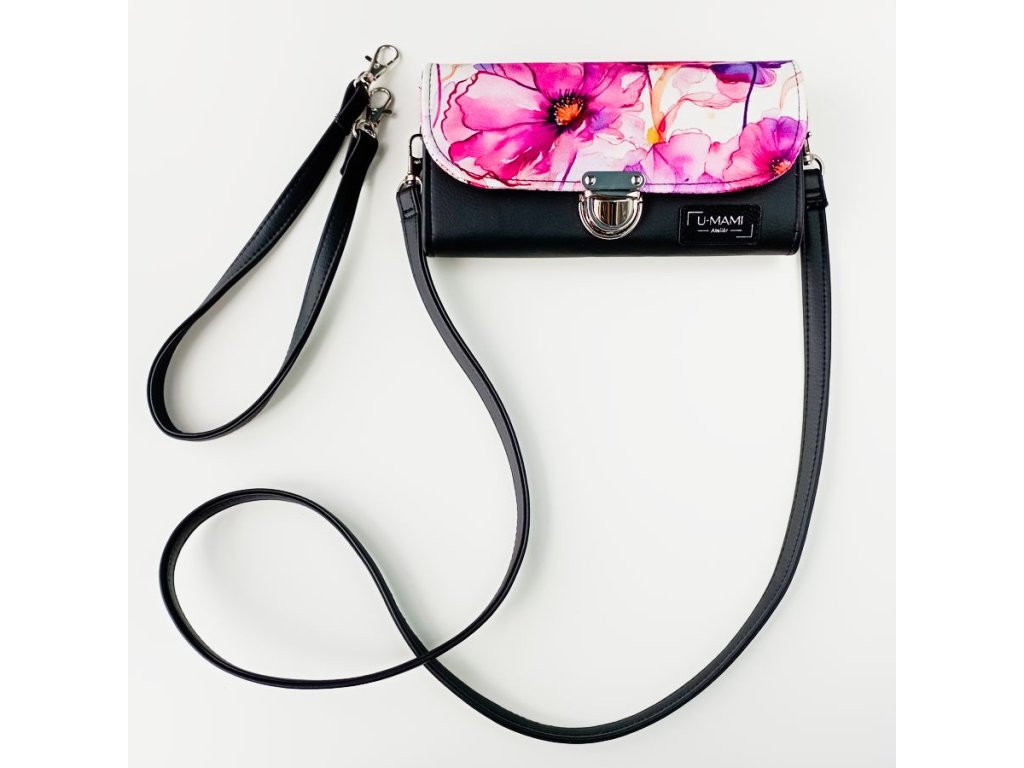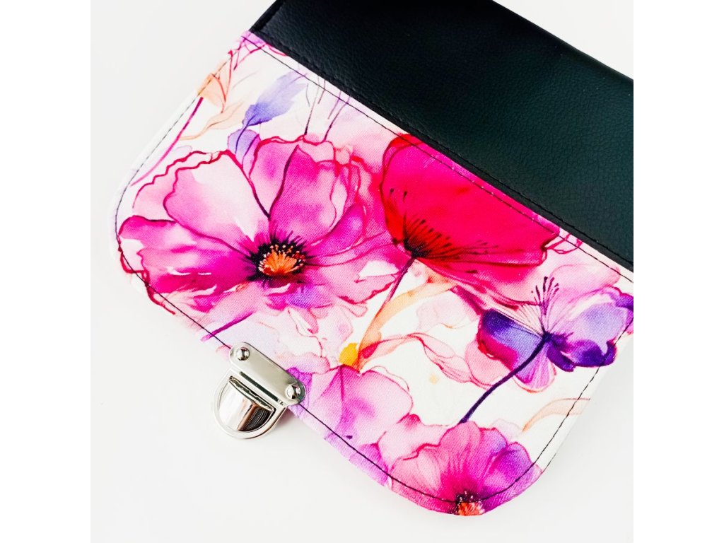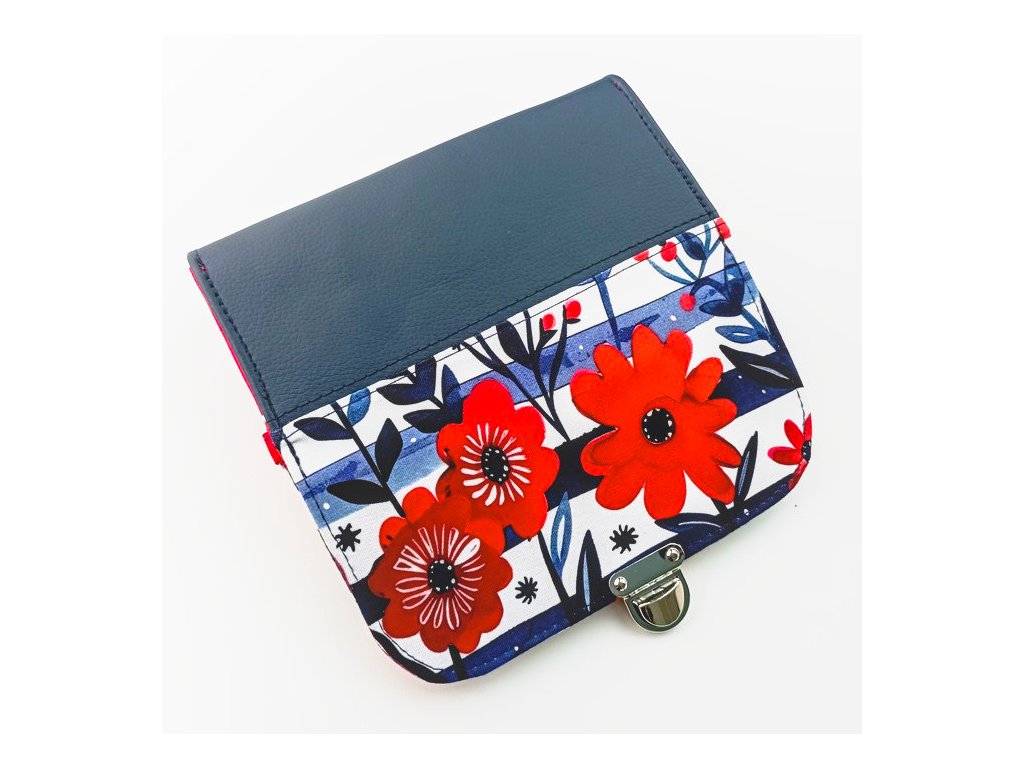 Tato elegantní peněženka z dílny U-MAMI Ateliér kombinuje hravý design a praktické provedení. Svrchní klopa s výraznými červenými květy na kontrastním podkladu přitáhne pozornost a dodá vašemu outfitu svěžest a originalitu.