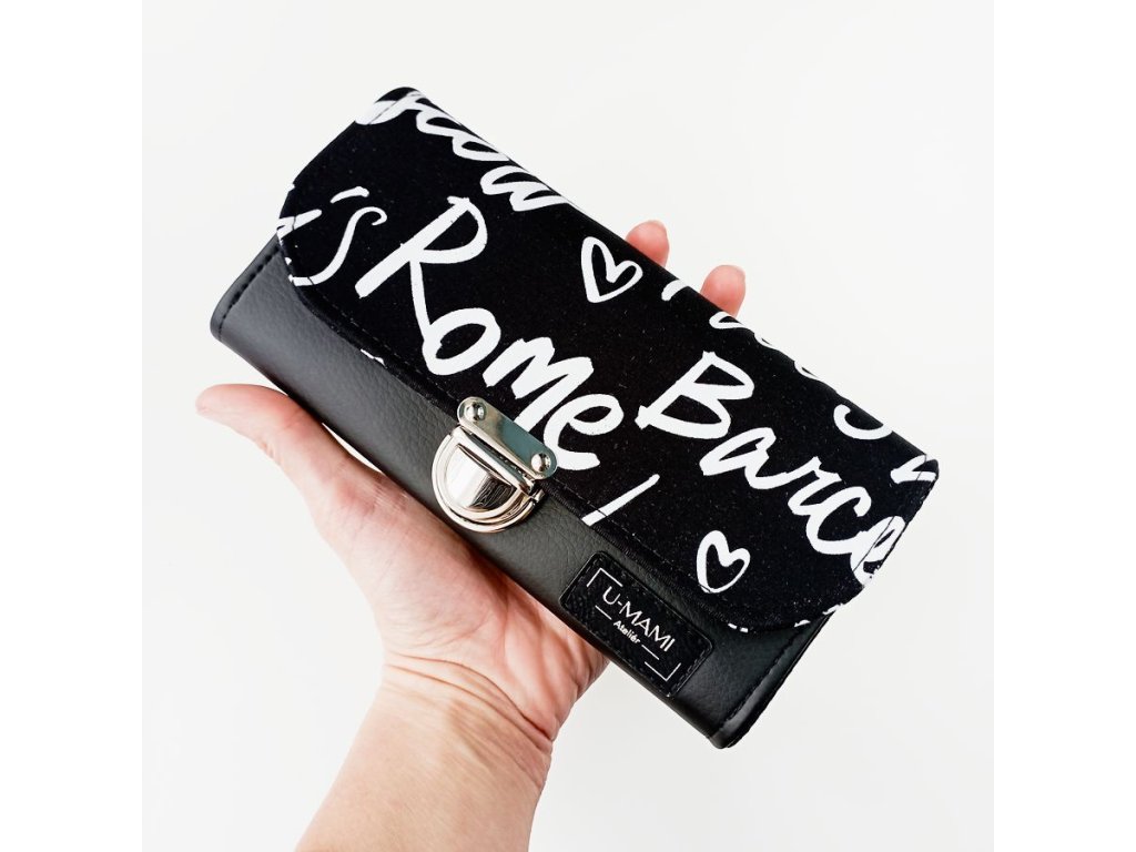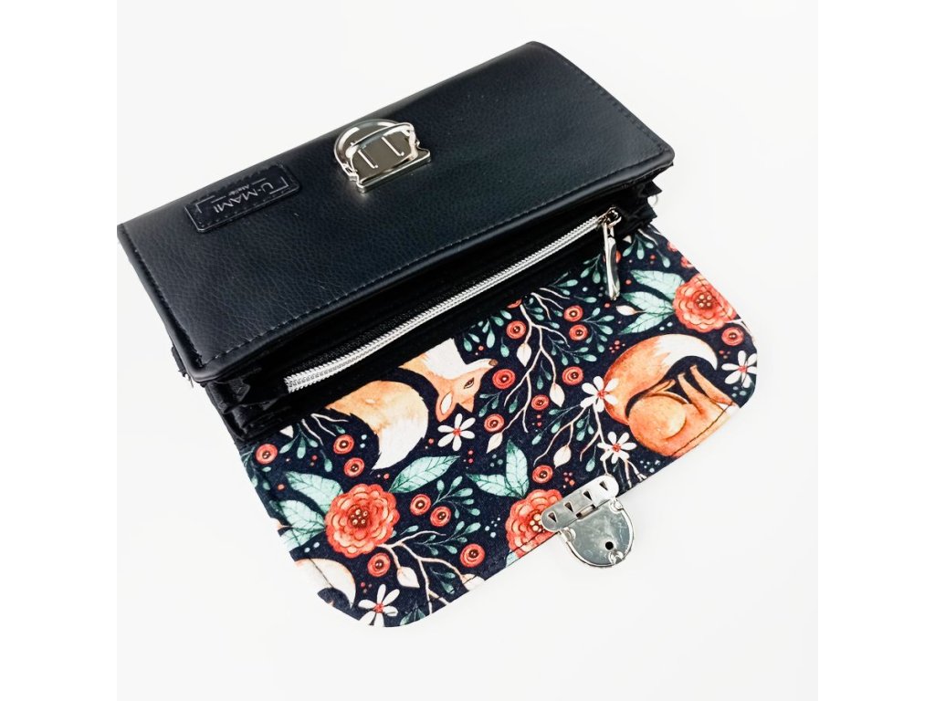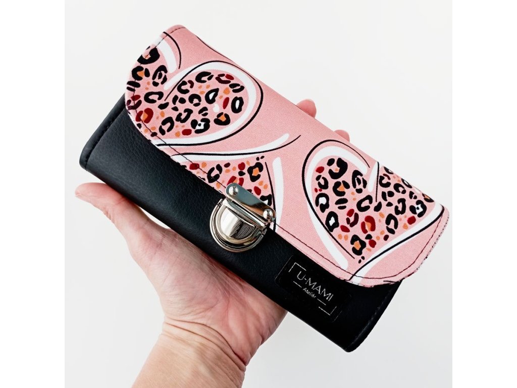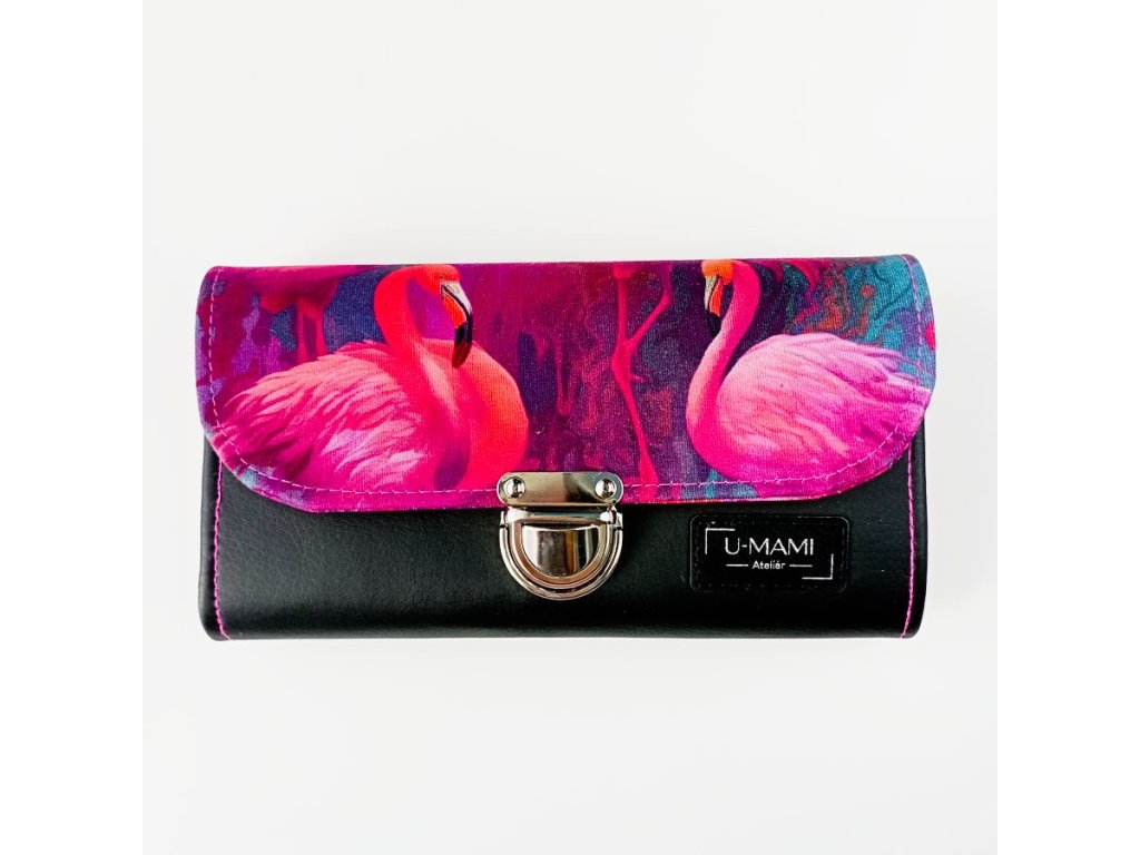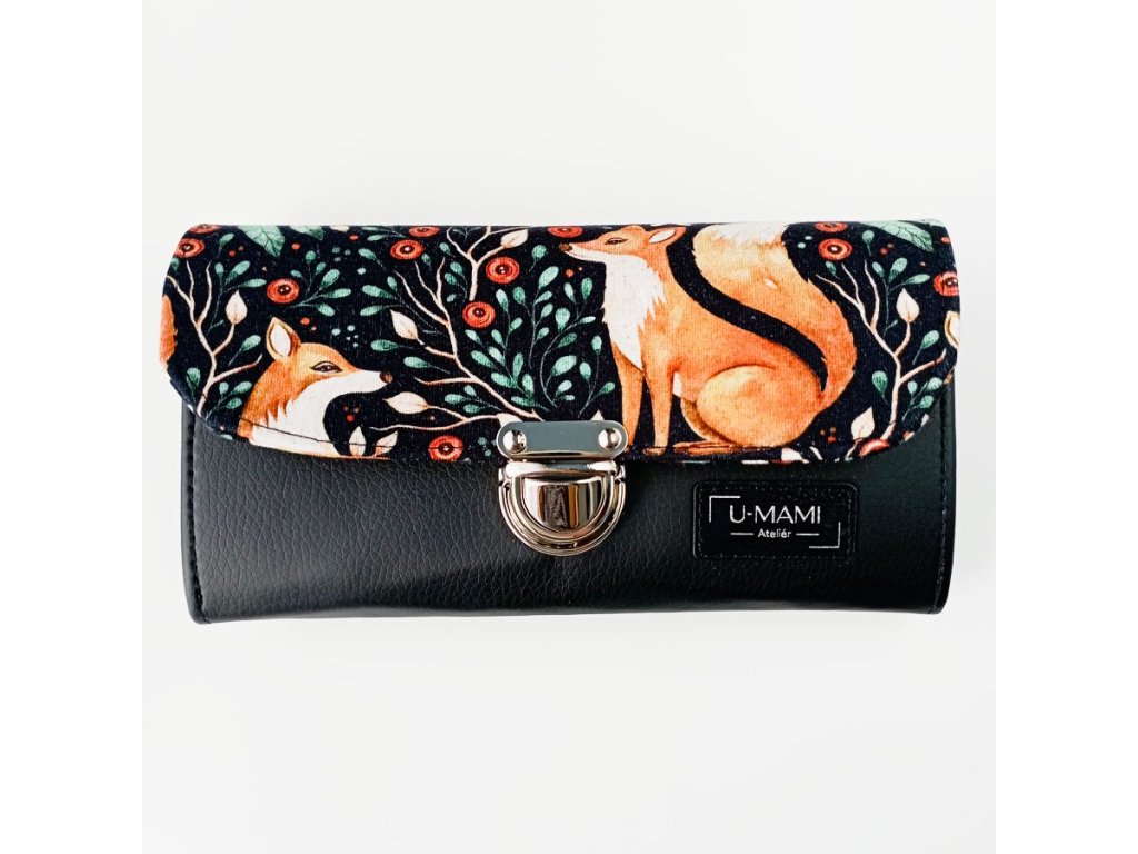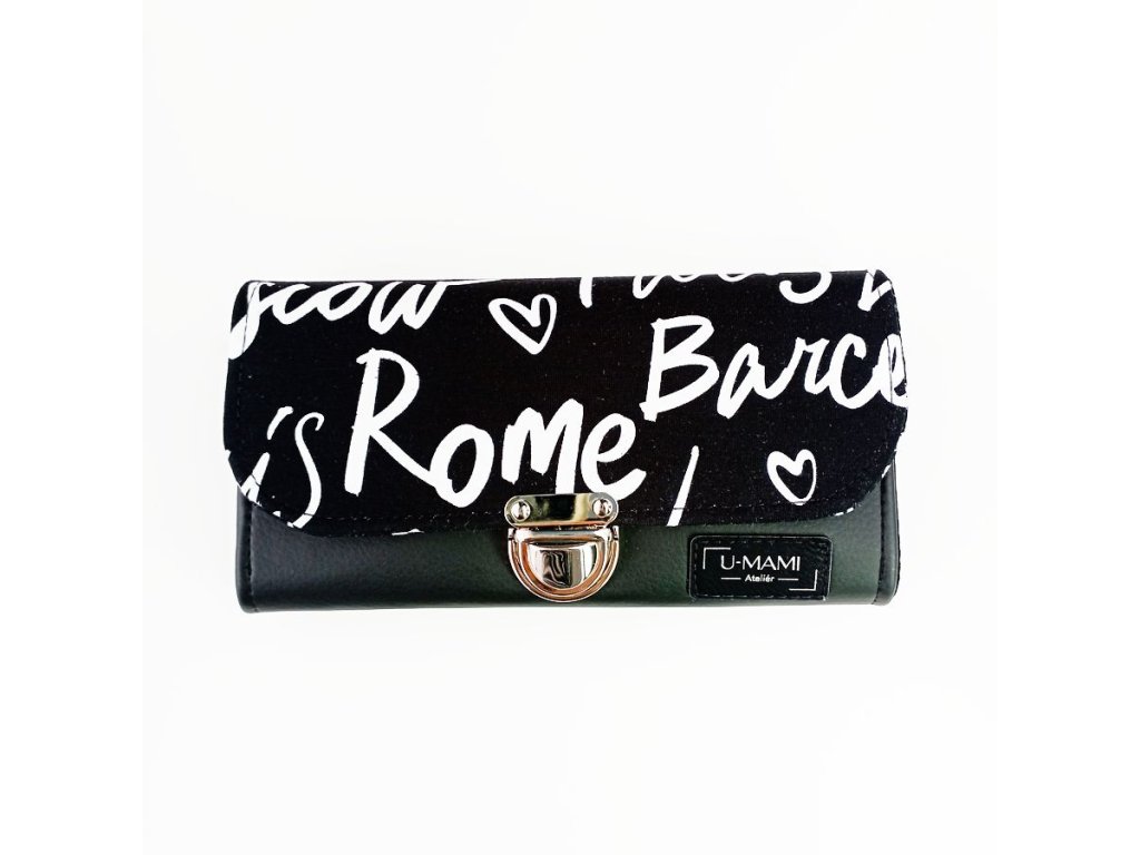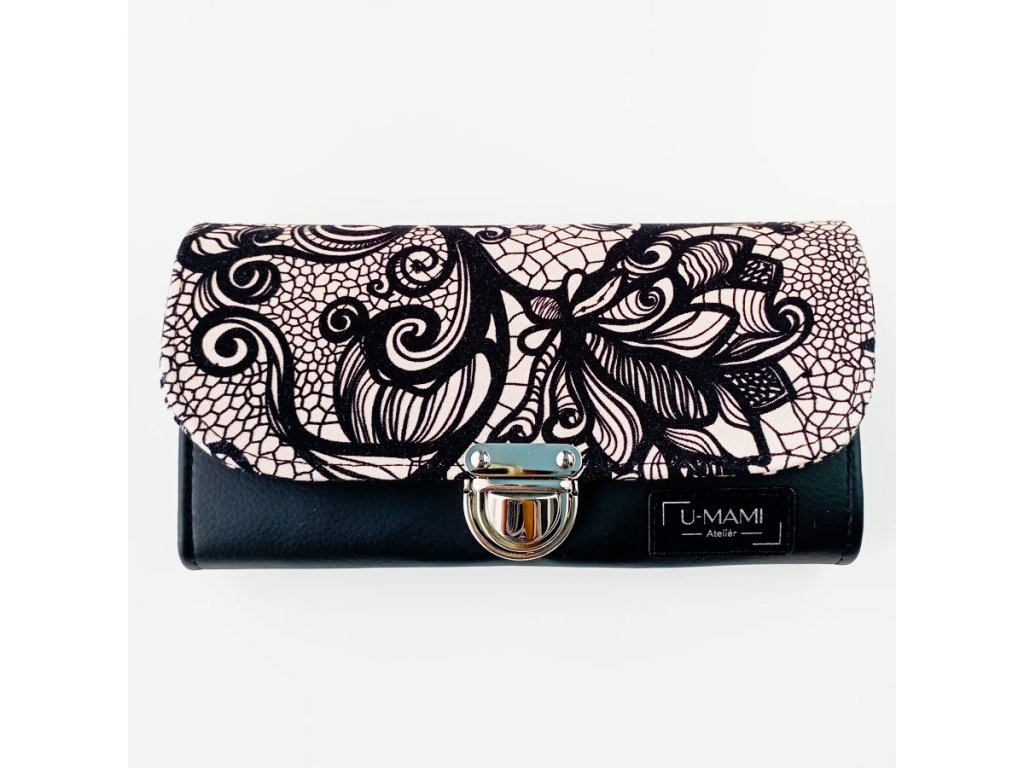 Tato elegantní peněženka z dílny U-MAMI Ateliér kombinuje hravý design a praktické provedení. Svrchní klopa s výraznými červenými květy na kontrastním podkladu přitáhne pozornost a dodá vašemu outfitu svěžest a originalitu.
