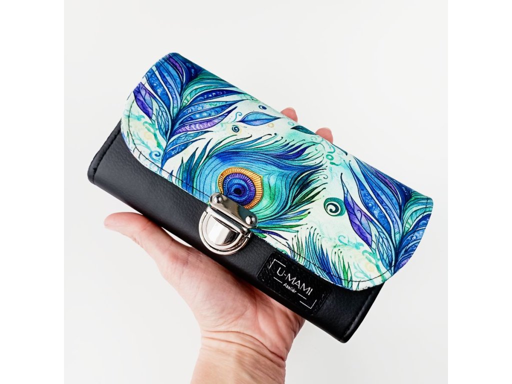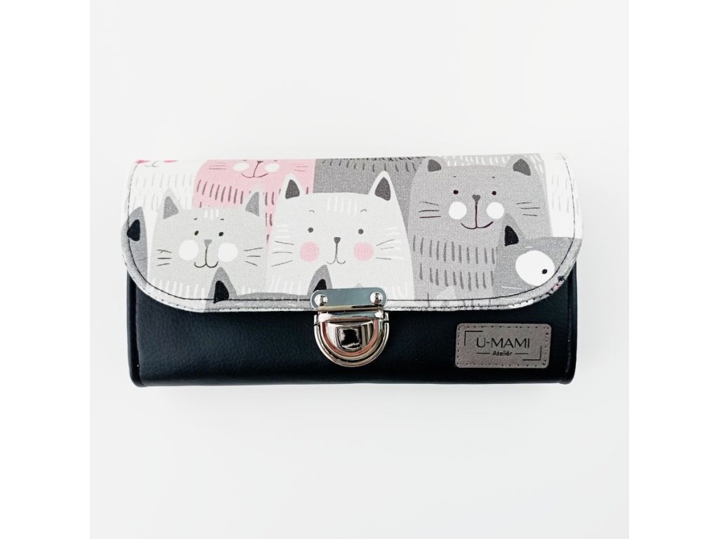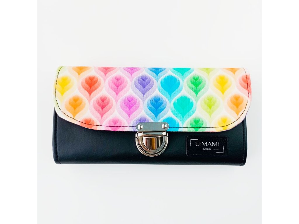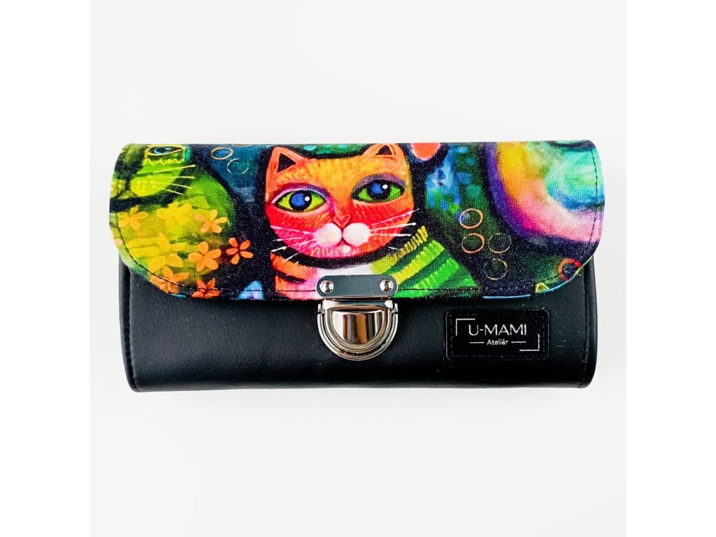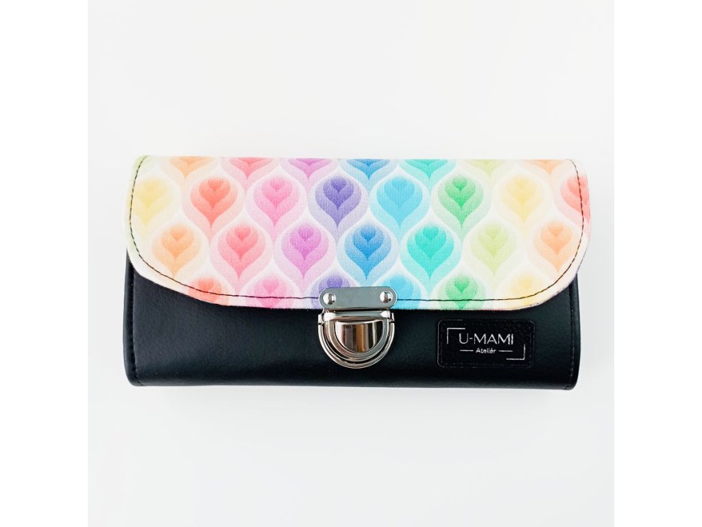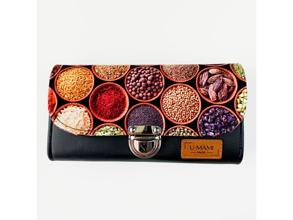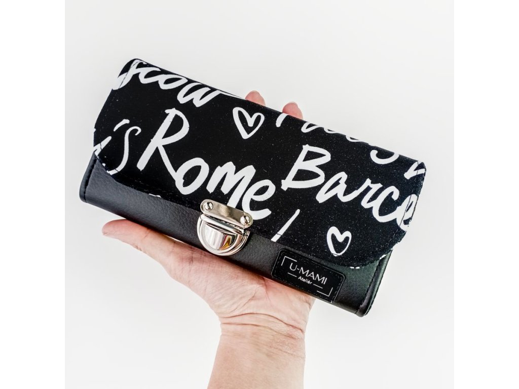 Tato elegantní peněženka z dílny U-MAMI Ateliér kombinuje hravý design a praktické provedení. Svrchní klopa s výraznými červenými květy na kontrastním podkladu přitáhne pozornost a dodá vašemu outfitu svěžest a originalitu.