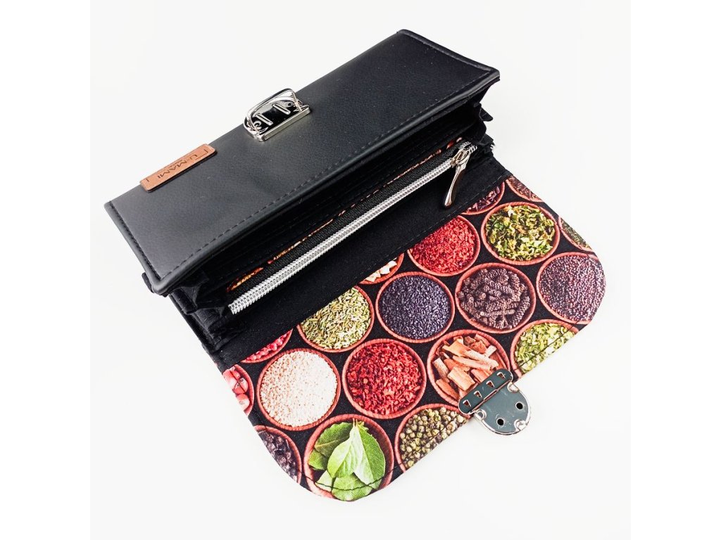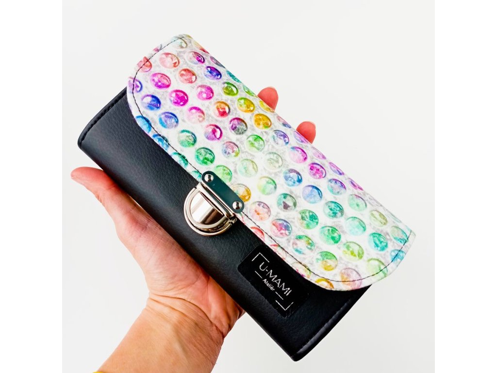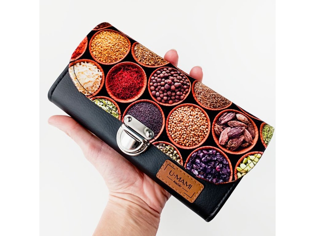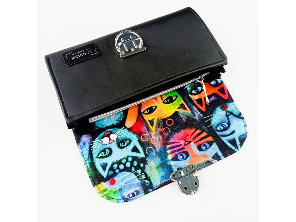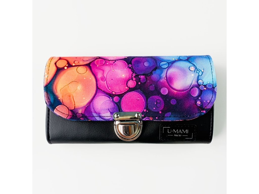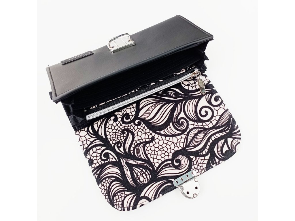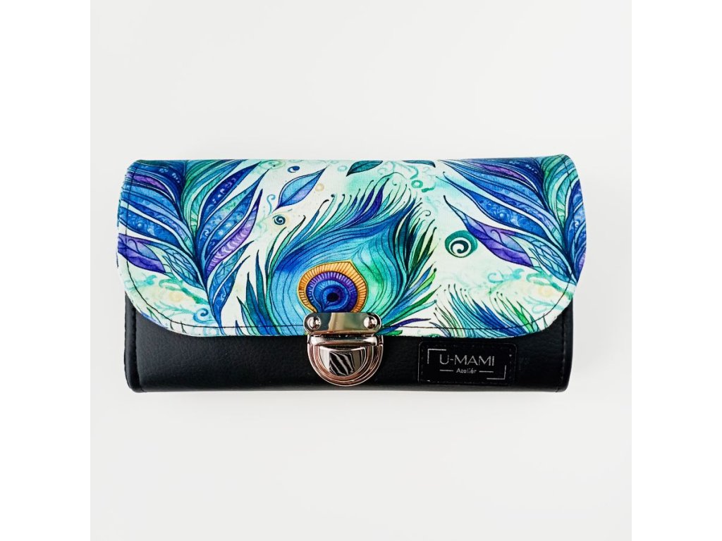 Tato elegantní peněženka z dílny U-MAMI Ateliér kombinuje hravý design a praktické provedení. Svrchní klopa s výraznými červenými květy na kontrastním podkladu přitáhne pozornost a dodá vašemu outfitu svěžest a originalitu.