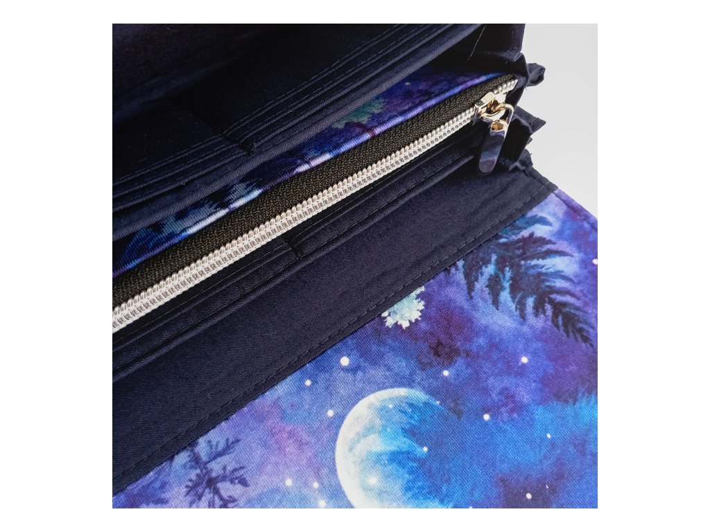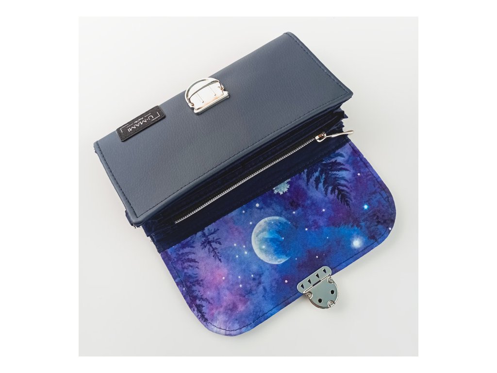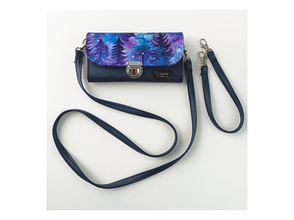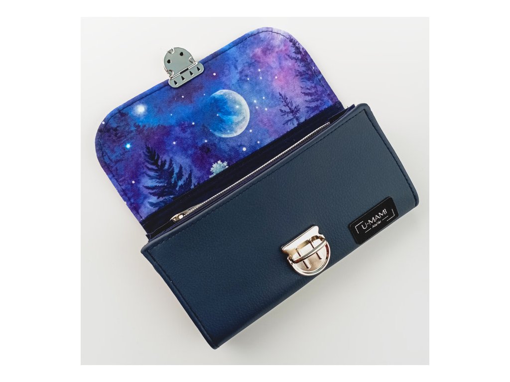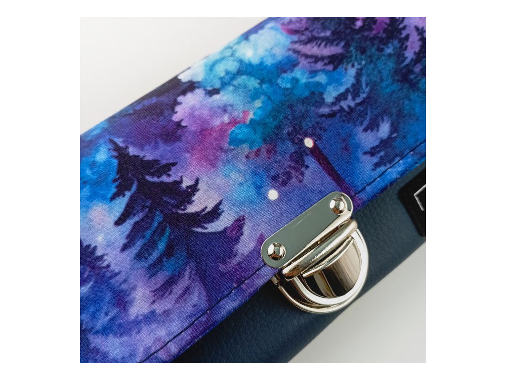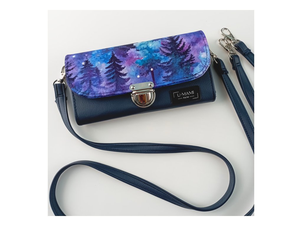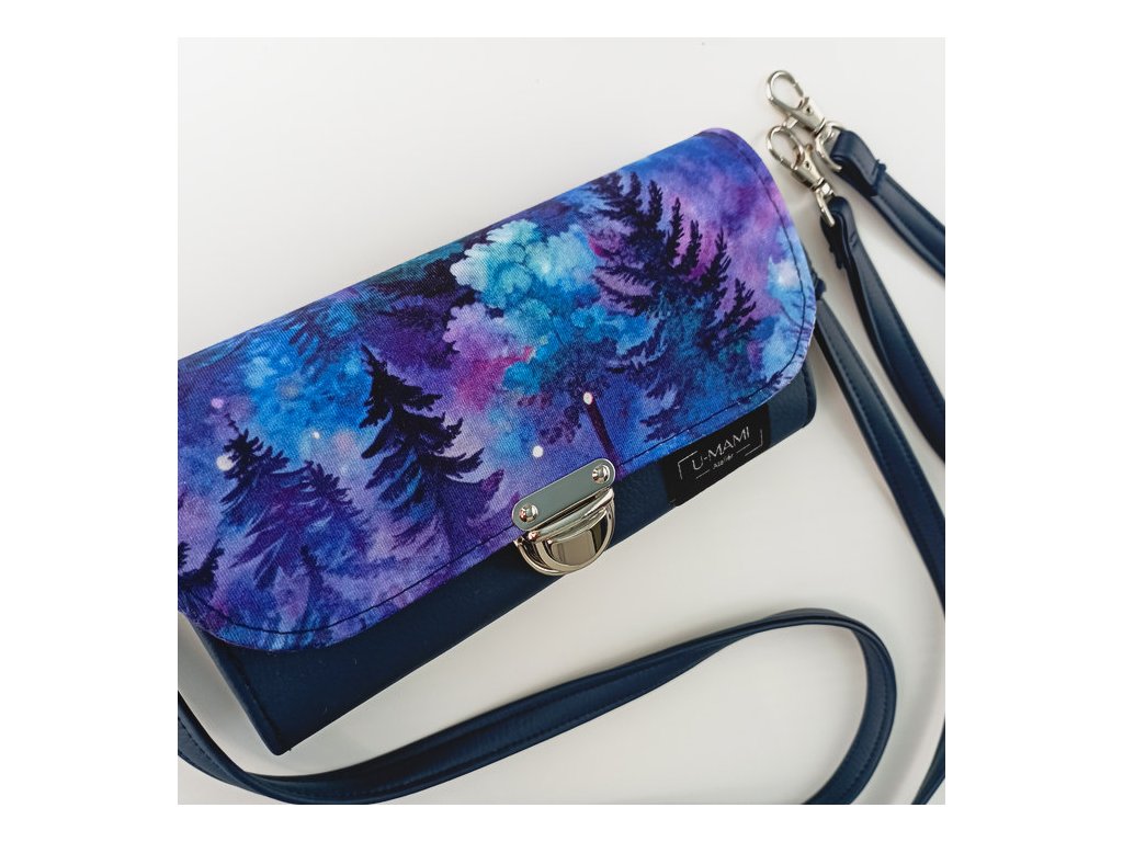 Peněženka z dílny U-MAMI Atelier vás vezme na cestu do tichého lesa pod hvězdnou oblohou. Vzor s majestátními stromy a tajemnými odstíny fialové a modré působí jako pohled do noční krajiny – klidný, harmonický, naplněný kouzlem přírody.