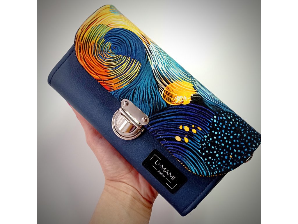 Hledáte doplněk, který o vás řekne víc než tisíc slov? Tato ručně šitá peněženka z Ateliéru U-MAMI v sobě spojuje eleganci tmavě modré koženky a naprosto fascinující autorskou látku, která vás nenechá chladnými.