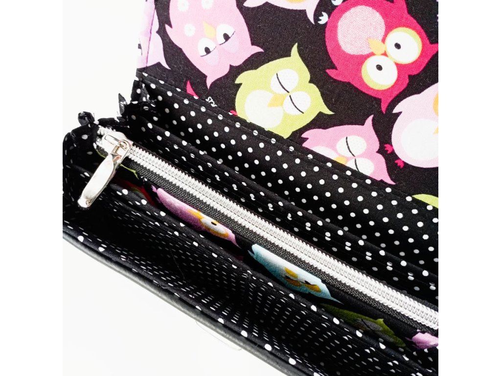 Roztomilé sovičky na této peněžence nejsou jen ozdobou – jsou malými strážci tvých každodenních pokladů. Každá z nich má vlastní výraz, náladu i špetku humoru a dohromady vytvářejí hravý vzor, který okamžitě vykouzlí úsměv.