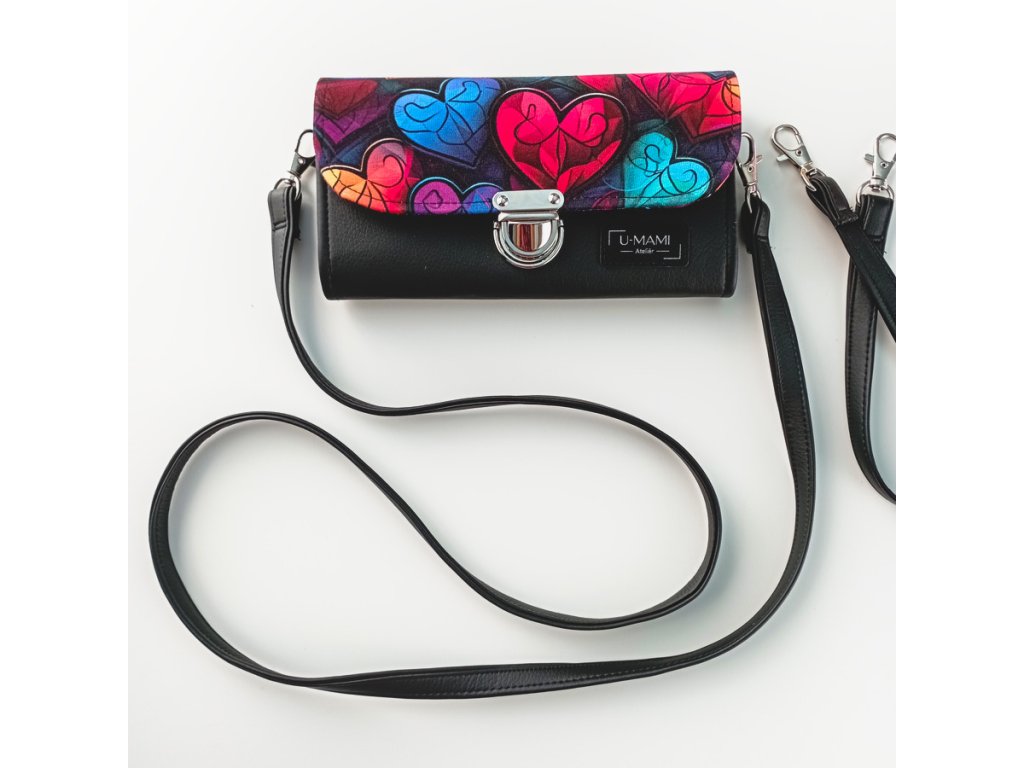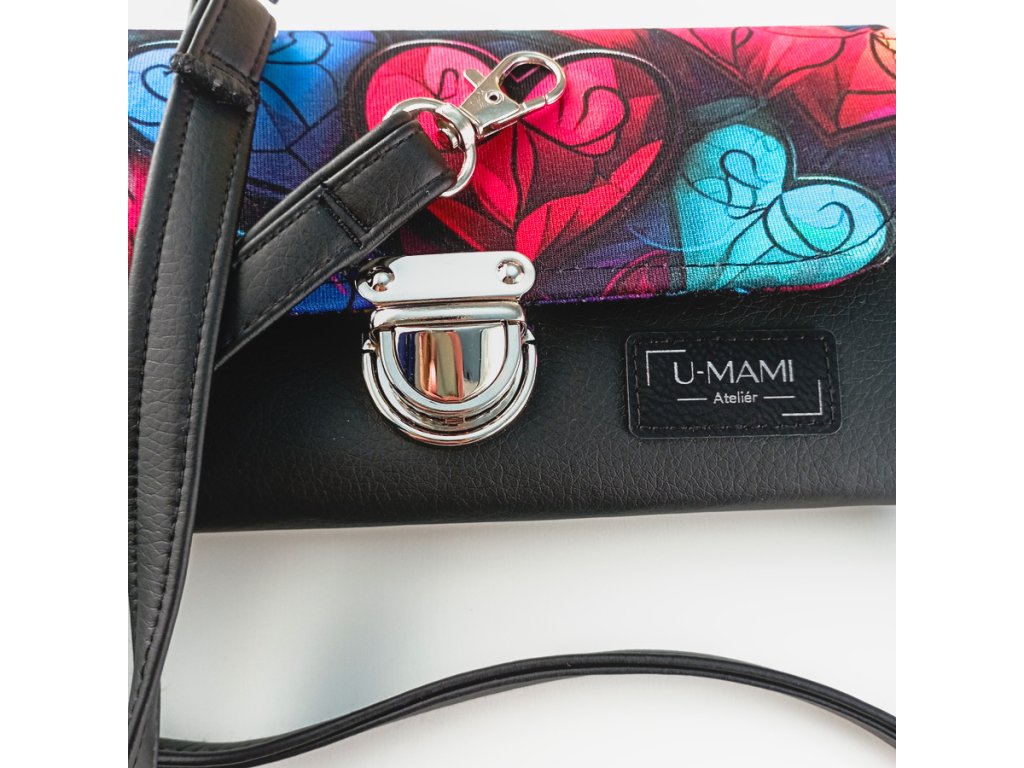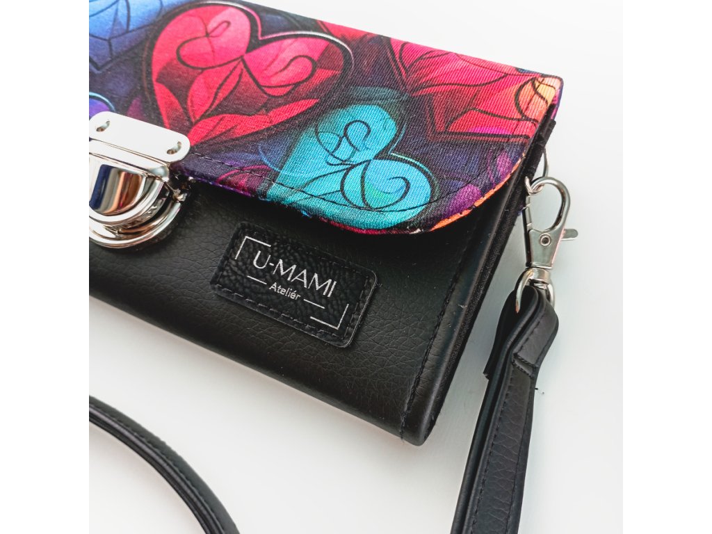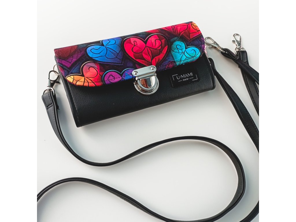 Zářivá kombinace barev, která připomíná skleněná vitrážová srdíčka – originální motiv, který z každé peněženky dělá malý umělecký kousek.