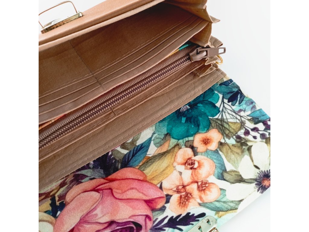 Představte si klidné odpoledne, kdy slunce hřeje přes listy stromů a vzduch voní po rozkvetlých květech. Vydáváte se tichou cestou zahradou — kolem vás se sklánějí pivoňky, růže i chrpy, jejichž barvy se jemně prolínají v dokonalé harmonii. A právě tuhle atmosféru v sobě nese tato peněženka.