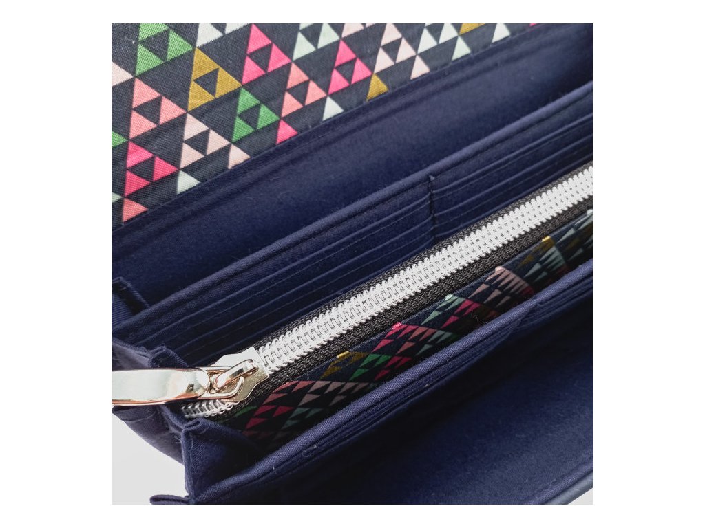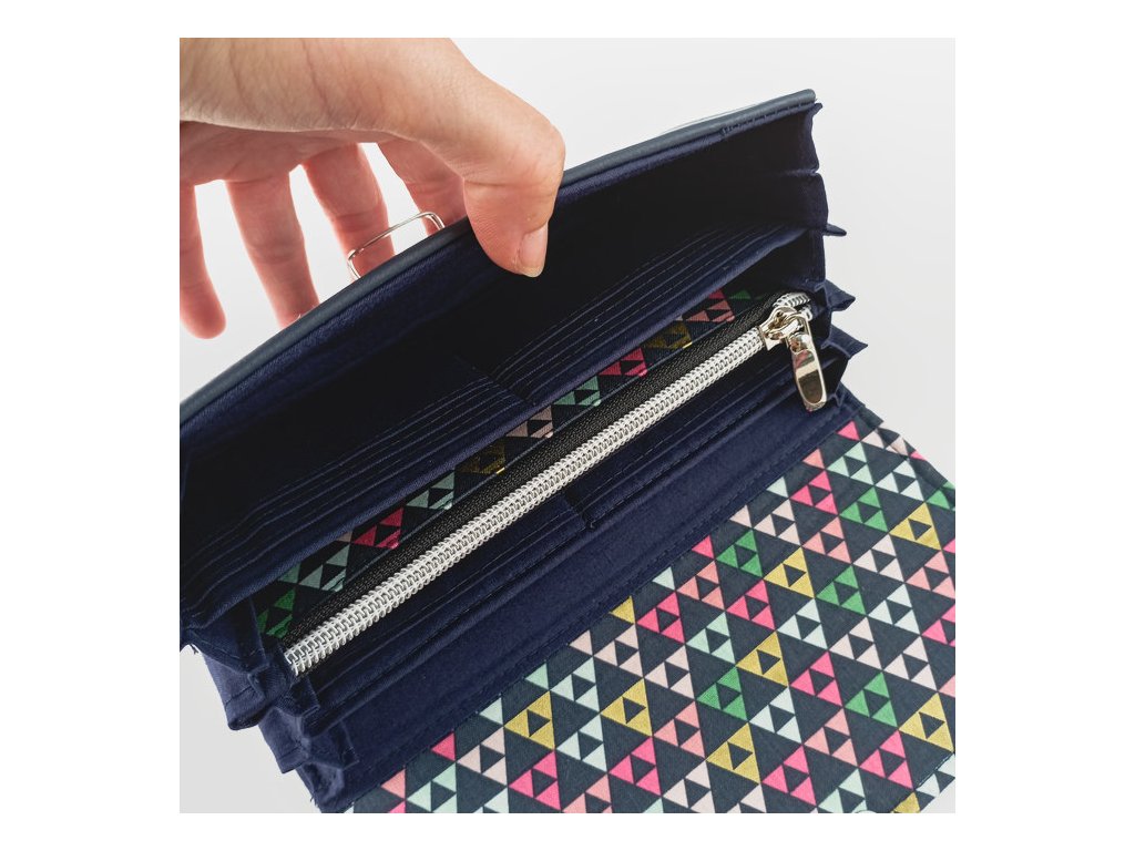 Originální peněženka s veselým geometrickým vzorem v pestrých barvách je dokonalým doplňkem pro každodenní nošení.