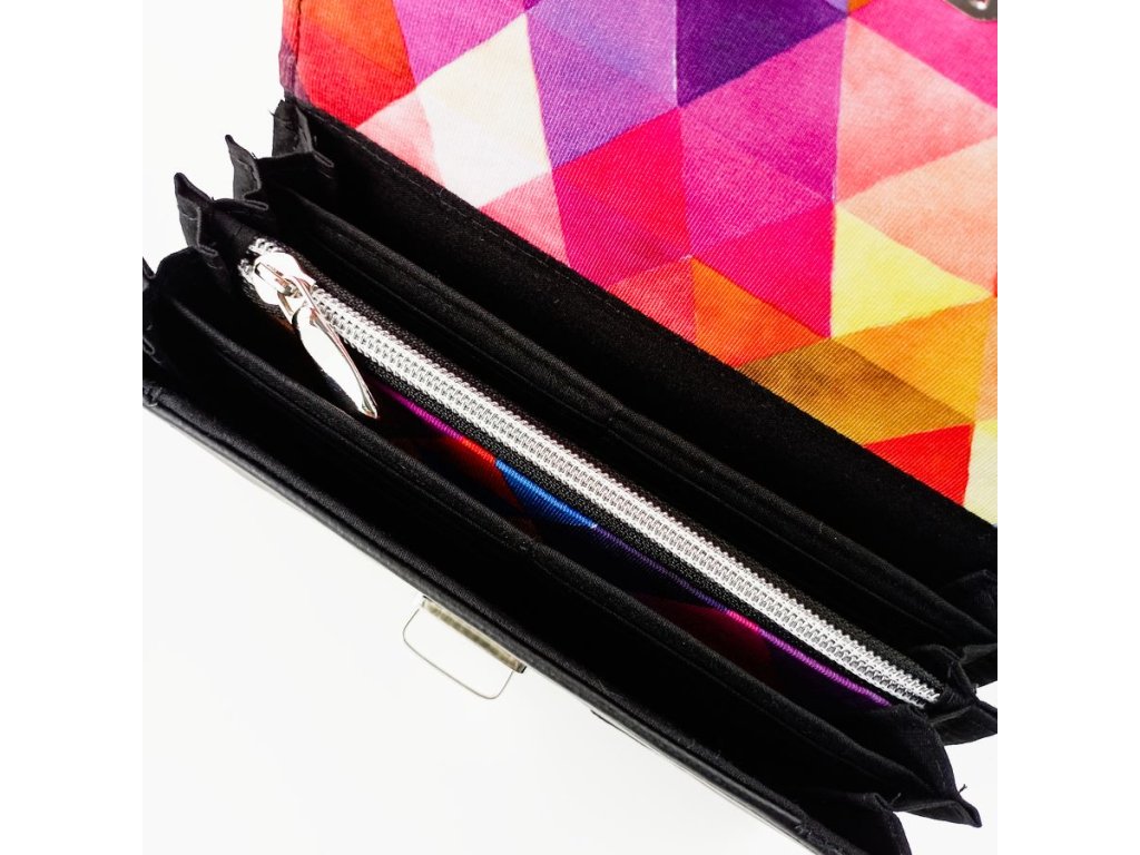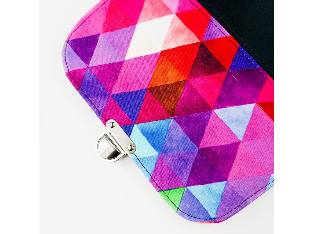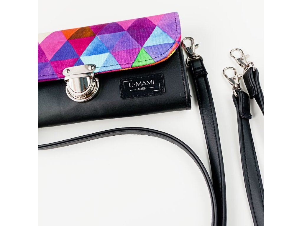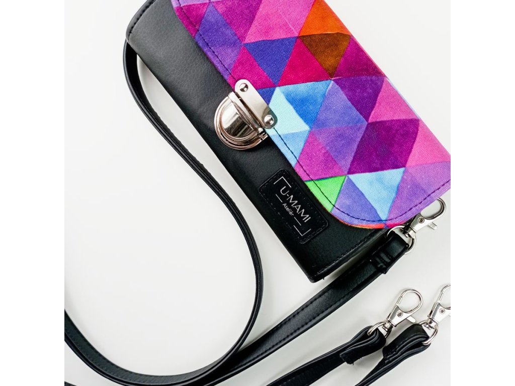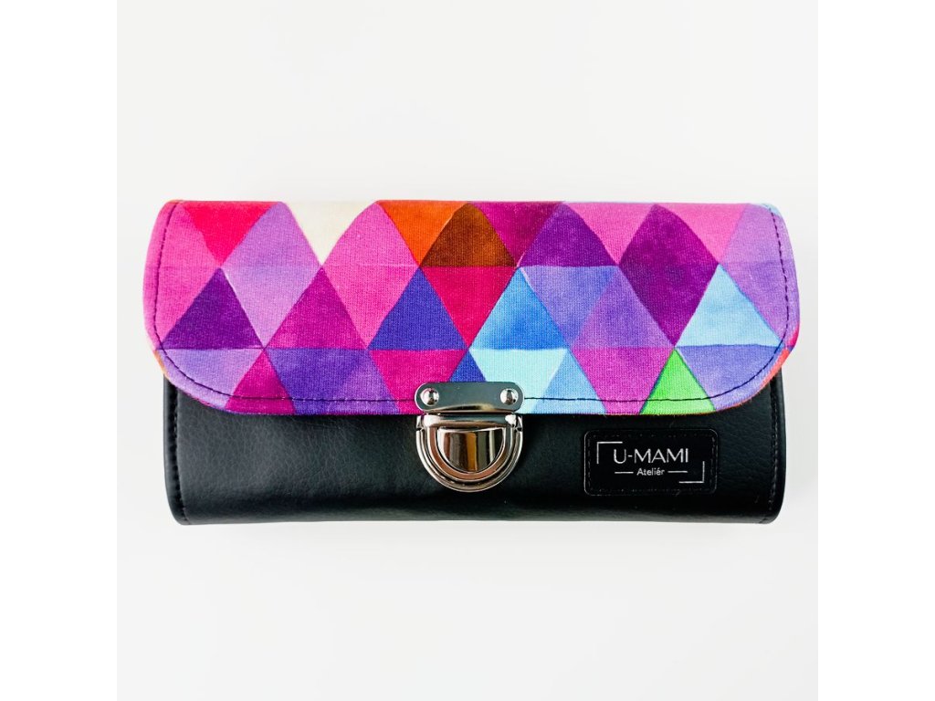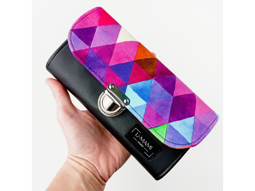 Tato peněženka z U-MAMI Atelier zaujme na první pohled svým výrazným geometrickým vzorem. Barevné trojúhelníky v odstínech růžové, fialové, modré i zelené se skládají jako moderní mozaika – hravá, energická a dokonale vyvážená. Je to design, který vyjadřuje kreativitu, radost a odvahu být jiná.